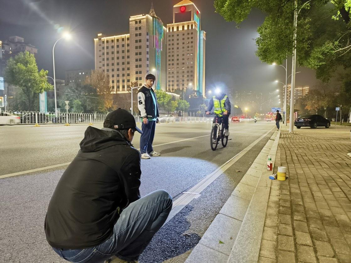夜色下,這群“賽道先行者”的身影先后出現(xiàn)在了杭州東路、澄月路、頤陽(yáng)路、武漢路等城市道路上。在經(jīng)過3個(gè)多小時(shí)的努力后,“黃馬”賽道丈量工作圓滿完成。