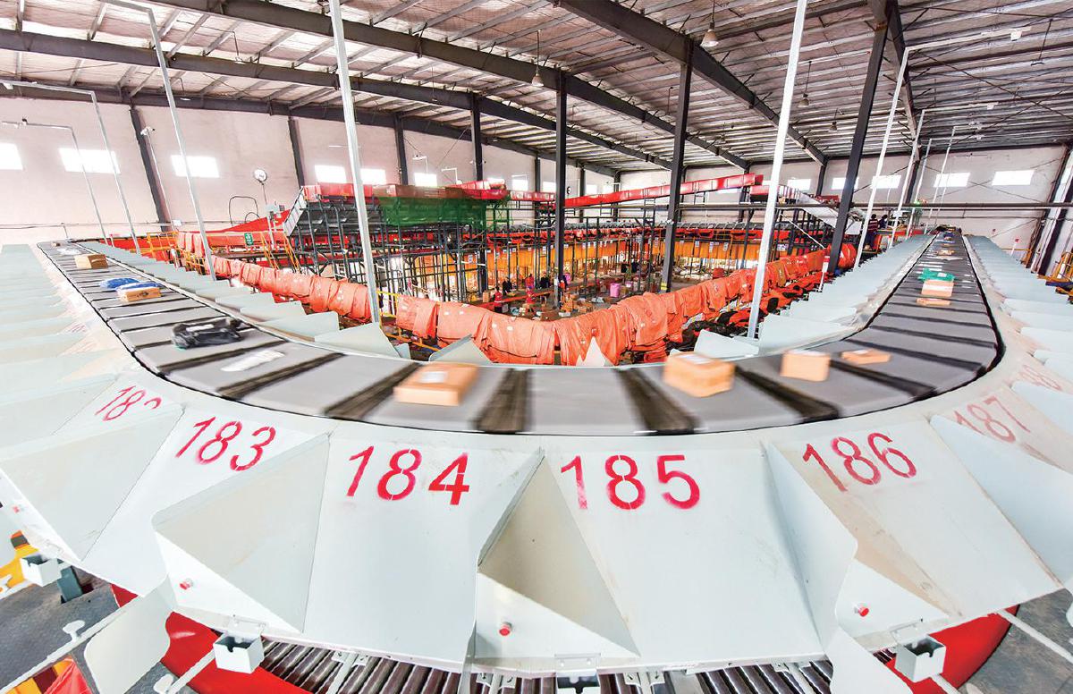 21日,湖北致和供應鏈管理有限公司快遞自動化設備正在高速運轉。據了解,該公司今年投資200萬元購置智能分揀設備,降低人工成本的同時,投送精準度得到提升,每日最高可處理快件10萬件,效率提升30%。