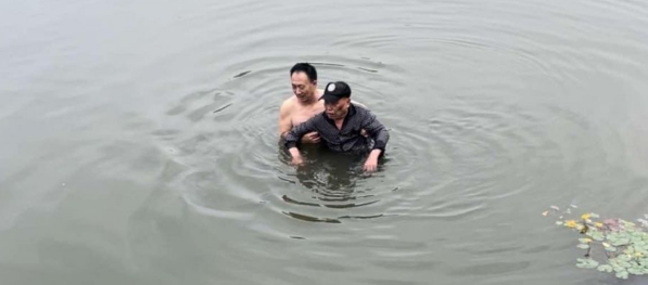 ????岸上有人朝老人呼叫“朝岸邊走”,老人卻沒有反應(yīng)。岸上有位女士連忙撥打110,環(huán)衛(wèi)工人找來兩根長竹竿,但因距離太遠(yuǎn)而無能為力。緊急關(guān)頭,滕彩禮迅速脫掉衣服,飛快跳入湖中,連走帶游向湖中老人靠近。他先是從背后抓住老人衣服用力朝上提,借助水的浮力向岸邊移動。接著,滕彩禮將老人抱在懷里,向岸邊靠近。到了岸邊,兩位小伙子上前幫忙,將老人拉上岸。