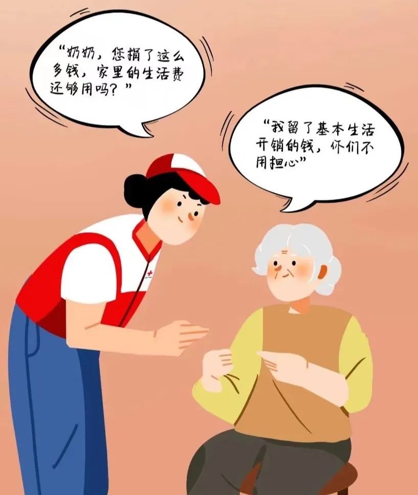 而老奶奶的回答很堅定:“在我還能走得動的時候,捐款都會親自來。家中已經留存了基本生活開銷的錢,你們不用擔心,這些錢只要能夠通過紅十字會幫助到其他人,就是我最大的心愿。”