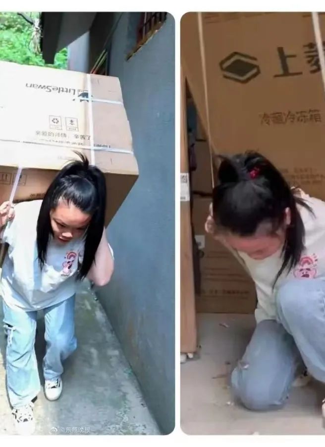 東楚晚報也在第一時間采訪到了這位背冰箱的女孩,她叫曹有緣,如今正在讀大二的她已經幫父親搬了整整六年的冰箱。