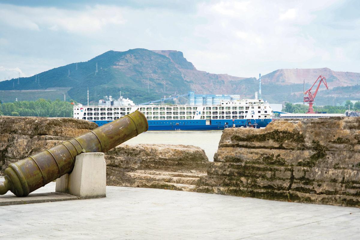 登山遠眺,長江煙波浩渺,航道船舶來往不斷。滾滾江水對面,田家鎮清晰可見。