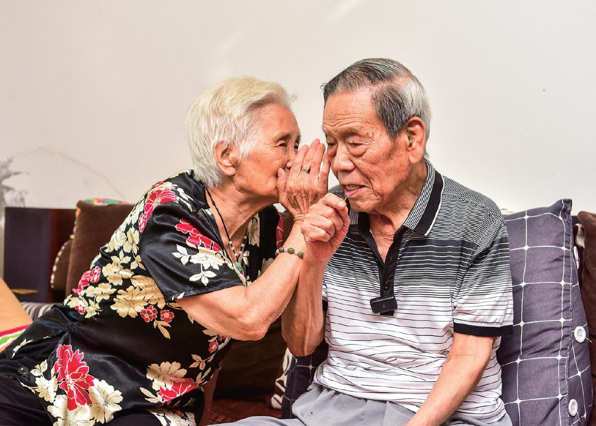 采訪中,面對聽力嚴重衰退的張立忠,我們通過家屬傳譯(左一是張立忠的老伴孔桂蘭)和手機語音轉文字交替進行。