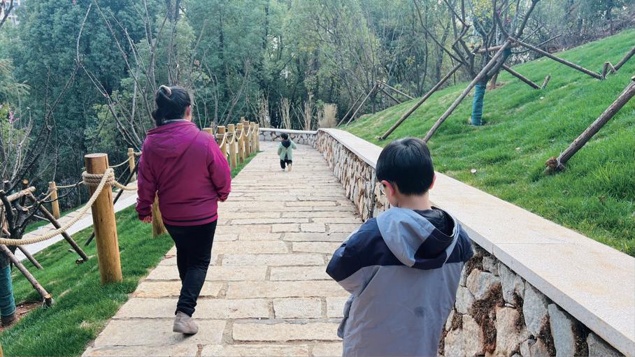 張子涵家住新西南國際花園小區,離青龍山公園不算遠。“我感覺公園適老化設計特別貼心,扶手間距、臺階高度都比較適合。奶奶喜歡茶余飯后出門散步,以后我也能經常陪奶奶來這里。”